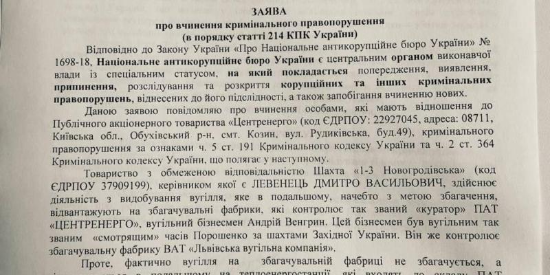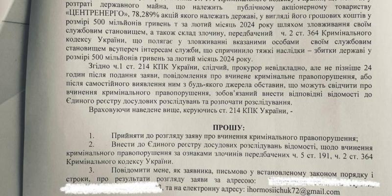 Екс-нардеп направив до НАБУ заяву про скоєння злочину головою Центренерго Андрієм Готою